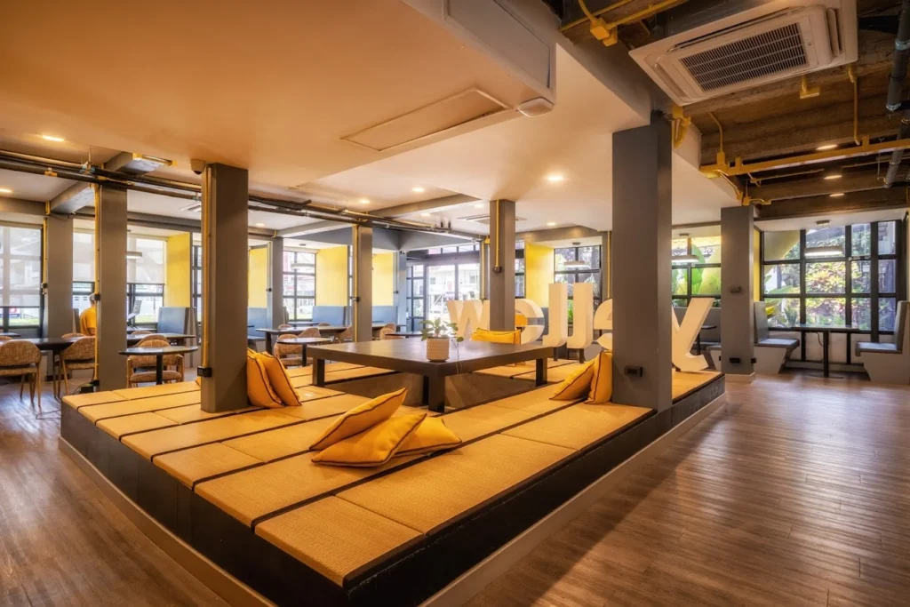 Located in Chiang Mai’s Nimman neighborhood, Yellow Coworking is a 16,000 square-foot space known for its strong community feel. It provides both indoor and outdoor seats, all equipped with ergonomic furniture and soundproof booths.