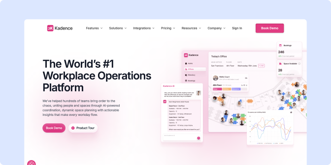 - Kadence AI: Book desks and rooms with real-time visual office maps showing desk availability and colleague locations.