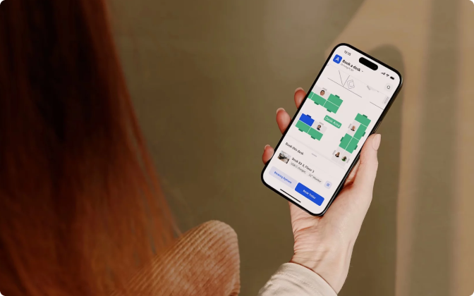 - Interactive floor plans: Book desks and rooms with real-time visual office maps showing desk availability and colleague locations.
