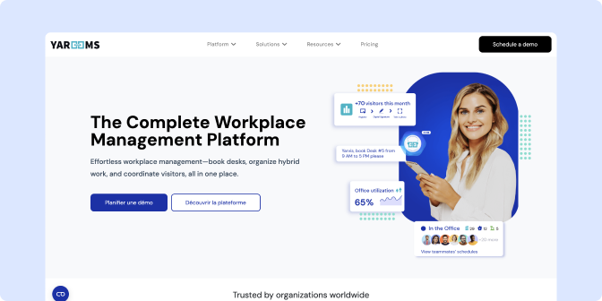 YAROOMS is best for small to mid-sized companies and growing organizations that need straightforward desk and room booking with strong Microsoft Teams integration. The tiered pricing makes it accessible for teams just starting out while offering AI features usually found in more expensive tools, like Kadence.