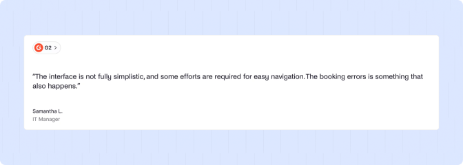 Also, despite offering a great set of features, a few users noted that there are some issues and glitches with the platform: “I didn’t like that some availability displays weren’t always accurate, and we had a few misbookings. A couple of mobile interface bits felt a little clunky compared to desktop.”